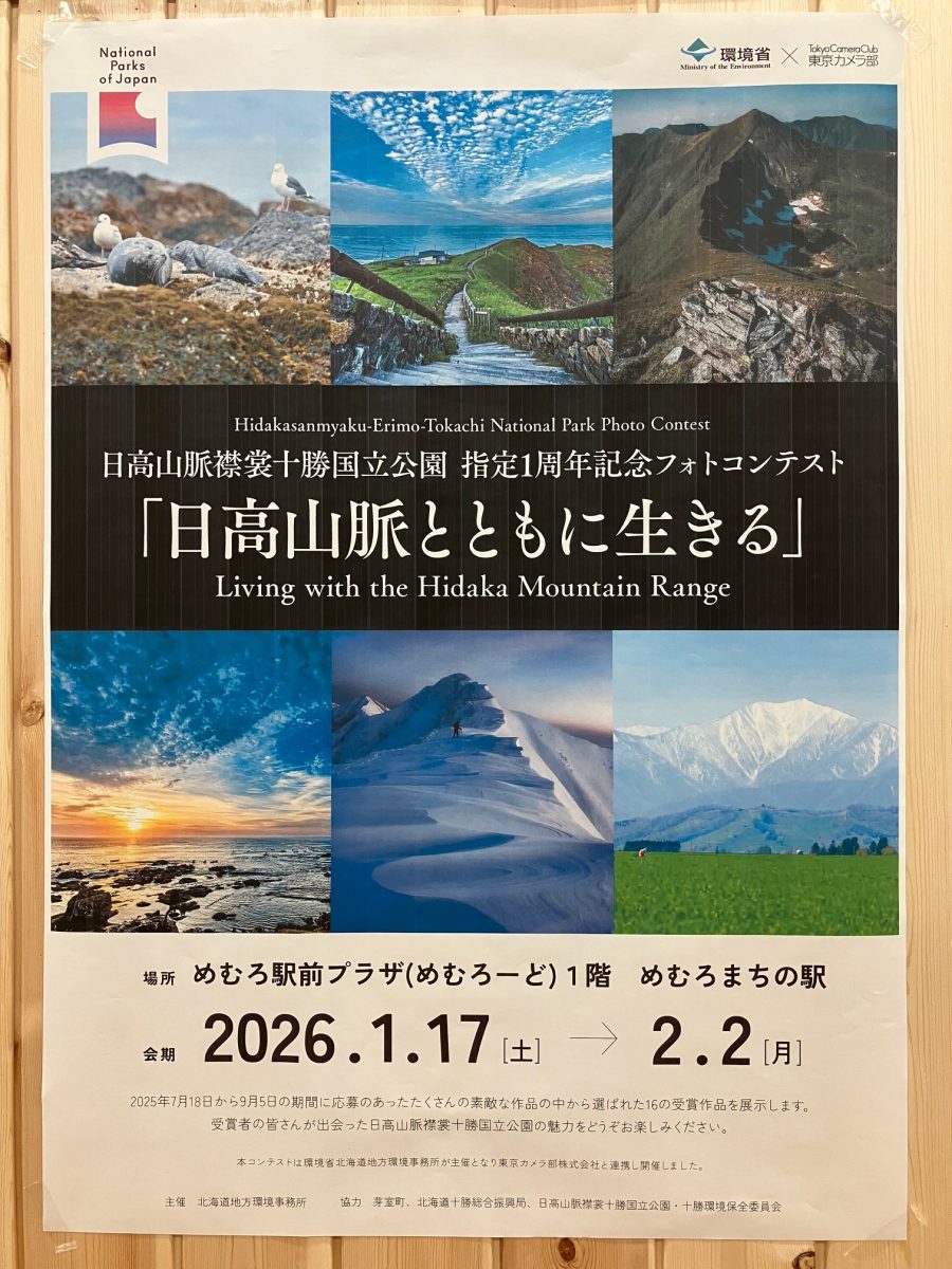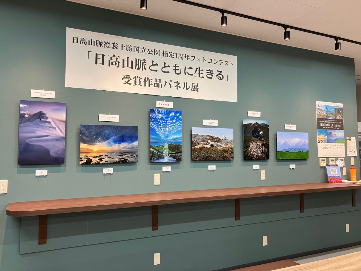 日高山脈襟裳十勝国立公園 指定1周年記念フォトコンテスト「日高山脈とともに生きる」受賞作品パネル展が芽室町・めむろーど内「まちの駅」にて開催されています。